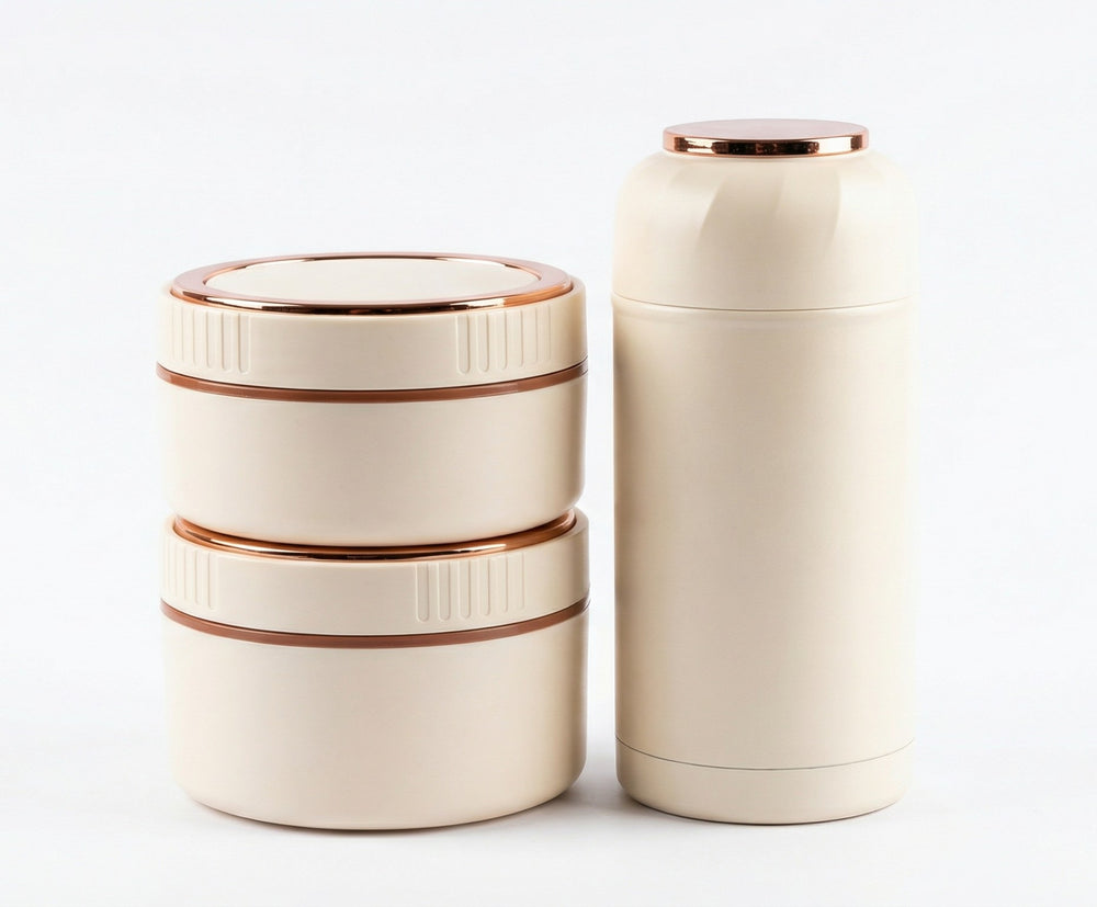 This white stainless steel lunch box with matching insulated bag is a complete set for carrying meals to school, office, or travel. The steel container keeps food protected, while the insulated carry bag helps maintain a comfortable temperature and makes transport easy.